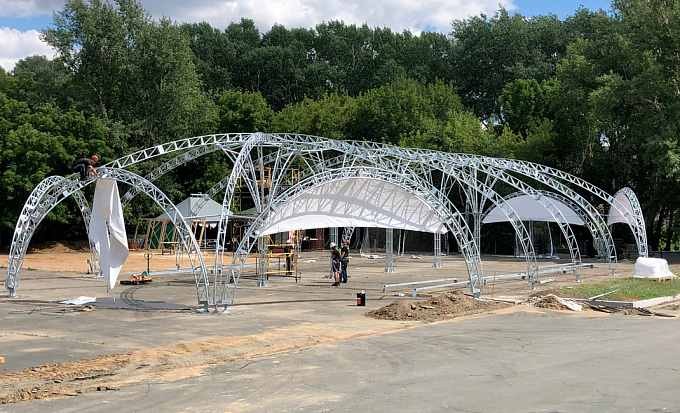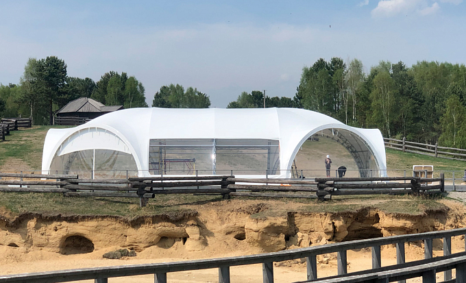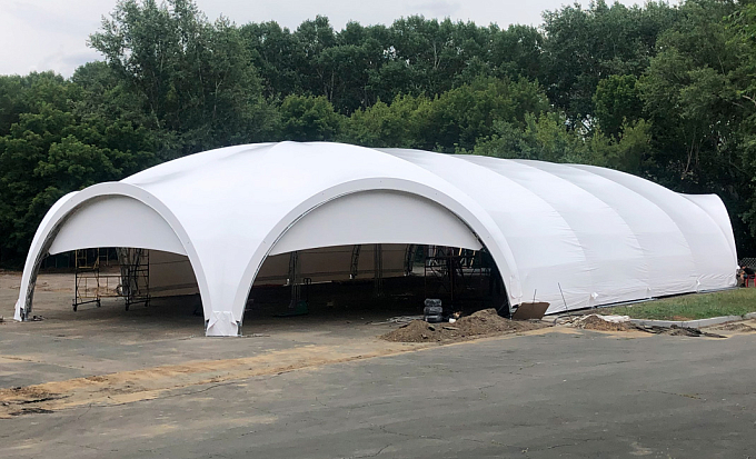 Большой гексагональный арочный шатёр на основе каркаса из стали с защитой от коррозии методом горячего цинкования. В качестве покрытия используется армированный тент ПВХ высокой плотности с защитой от УФ-излучения и двухсторонней пропиткой от гнили и плесени. Возможно изготовление уникальной арочной конструкции на заказ. Являемся производителем каркасно-тентовых конструкции с собственным инженерным отделом, монтажными бригадами и производством полного цикла. Предлагаем большое количество различный опций, которые позволят максимально кастомизировать шатёр под нужны вашего мероприятия. Оказываем услуги по аренде шатров с выполнением всех работ «под ключ», таких как: доставка, монтаж/демонтаж, вывоз конструкции, брендирование и прочие услуги.