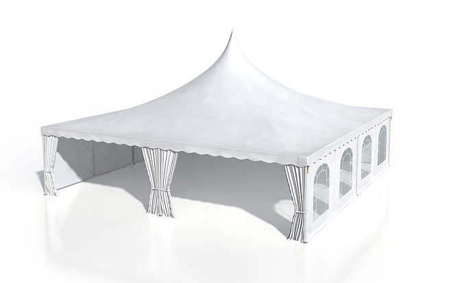 Представленная модель может подойти для любых мероприятий на открытом воздухе. Тентовые шатры отличаются простотой монтажа и отличным внешним видом, что делает конструкции довольно востребованными. Безопорная длина конструкции 10 метров. Возможен монтаж шатра с окнами для лучшего освещения или без них.