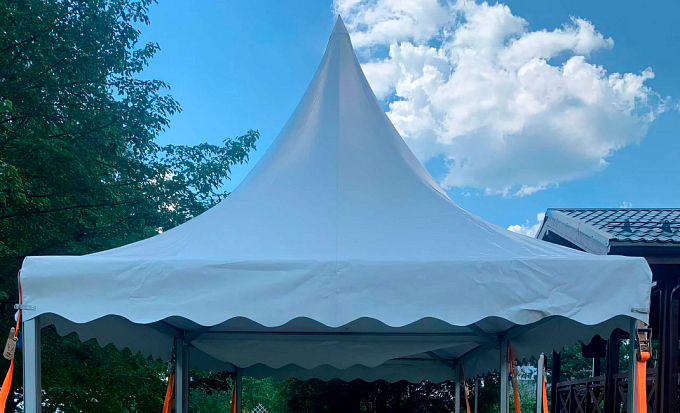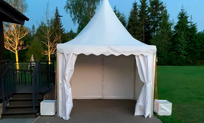 Pagoda tipidagi eng kichik chodir ommaviy tadbirlarni o'tkazishda va vaqtinchalik xonalarni tezda joylashtirishda kichik savdo nuqtalarini tashkil qilish uchun javob beradi. Yengil vazn, mustahkam ramka, yig'ish oson, qayta foydalanish mumkin, kamar qisqichlari yoki og'irliklarni qoplamani buzmasdan o'rnatish va dizaynning boshqa afzalliklari pagoda chodirlarini ijara biznesida va har qanday tadbirlarni o'tkazishda juda mashhur qildi.