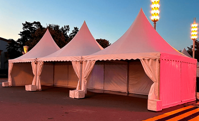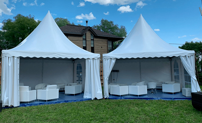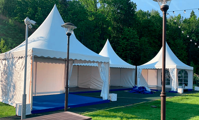 Pagoda chodirlari oilaviy tadbirlarni tashkil qilish uchun ham, korporativ tadbirlarni o'tkazish uchun ham, ko'rgazma va taqdimotlar uchun ham javob beradi. Chodirni har qanday tekis yuzaga joylashtirish mumkin: asfaltdan binoning tomigacha.